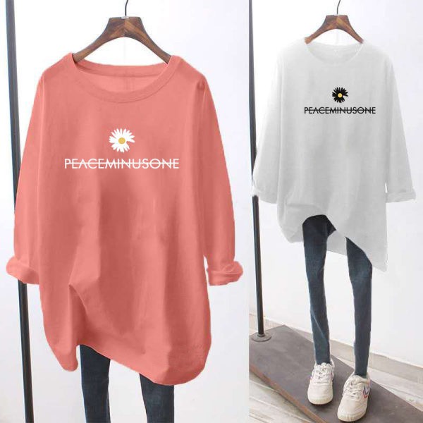 Baju T Shirt Perempuan Saiz Besar - Ready Stock Baju T Shirt Perempuan Lengan Panjang Viral Murah Cotton Sweater Leher Bulat Putih Perempuan 2021 Pelajar Musim Bunga Dan Musim Gugur Versi Korea Longgar Saiz Besar Baju Nipis Trend Baju